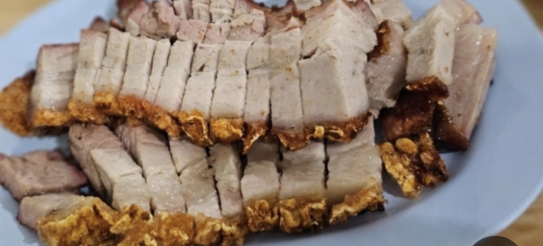 태국요리 무껍(หมูกรอบ, Moo Krob)은 ‘바삭한 돼지고기’라는 뜻을 가진 태국 요리로, 삼겹살을 바삭하게 튀겨 겉은 바삭하고 속은 촉촉하게 만든 요리입니다. 고소한 기름 맛과 쫀득한 식감이 어우러져, 단독으로 먹거나 쌀국수, 팟카파오(가파오볶음), 쌀밥과 함께 곁들여 먹는 인기 반찬입니다. 외관은 단순한 돼지고기 튀김 같지만, 진정한 태국식 무껍은 세 번 조리하는 과정(삶기–건조–튀기기)**을 거쳐야 완성됩니다.